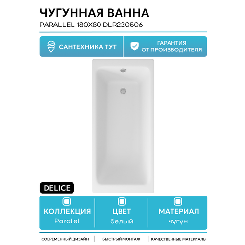 Чугунная ванна Delice Parallel 180x80 DLR220506-AS без отверстий под ручки с антискользящим покрытием