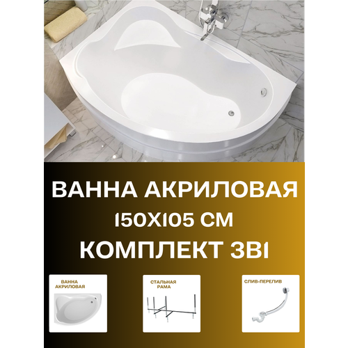 Ванна акриловая 150х105 см CATANIA комплект 3в1: Ванна Левосторонняя, металлическая рама, слив-перелив 01кт1510лкс2+