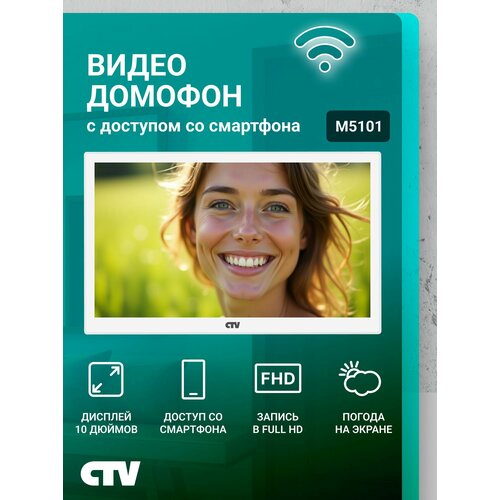 CTV-M5101 (Белый) Видеодомофон с Wi-Fi для квартиры, поддержка Full HD, сенсорный IPS дисплей 10" 1024x600, с записью по детекции движения и удаленным доступ со смартфона
