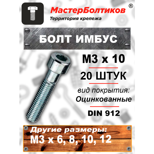 Болт имбус 3х10 DIN912 оцинкованный (20 штук)