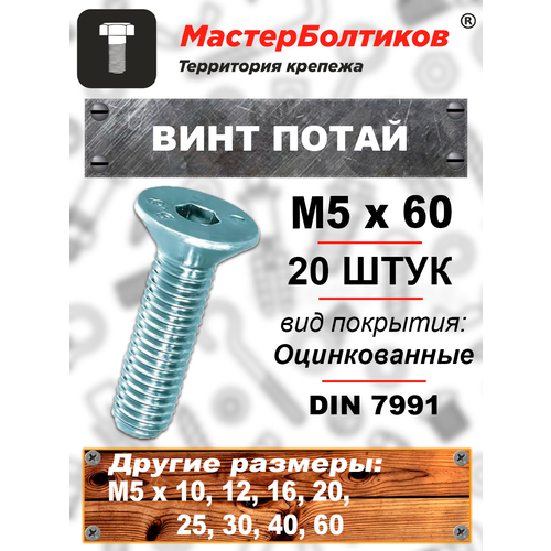 Винт потай 5х60 DIN7991 8.8 оцинкованный (20 штук)