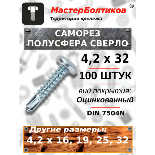 Саморез 4,2х32 полусфера сверло оцинкованный DIN 7504N (100 штук)