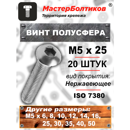 Винт полусфера M5х 25 внутренний шестигранник нержавеющий А2 ISO 7380 (20 штук)