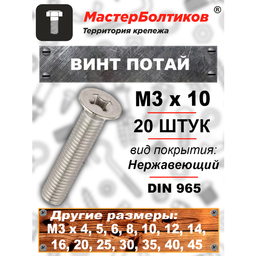 Винт потай M3х 10 нержавеющий А2 DIN 965 (20 штук)
