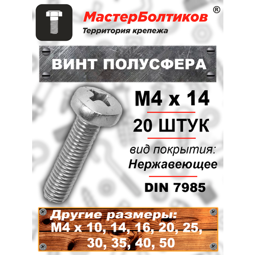 Винт полусфера 4х 14 нержавеющий A2 DIN7985 (20 штук)