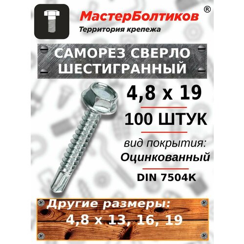 Саморез 4.8х19 шестигранная головка сверло оцинкованный DIN7504К (100 штук)
