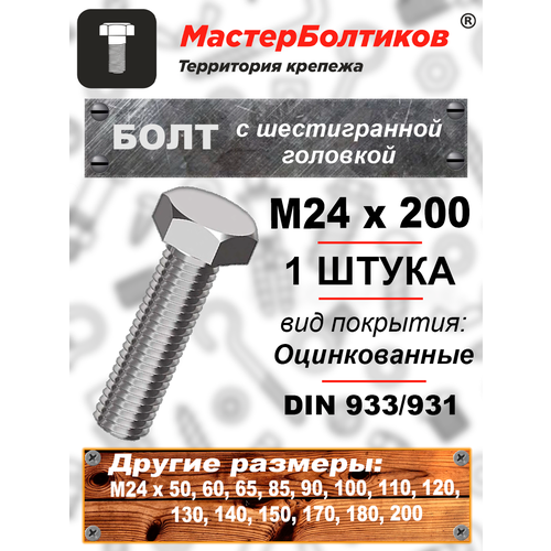 Болт 24х200 с шестигранной головкой DIN933/931 оцинкованный (1 штука)