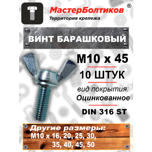 Винт 10х45 барашковый DIN316 ST (10 штук)