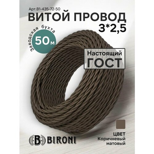 Ретро проводка Bironi, провод 3х2,5 заводская бухта 50 м, матовый, B1-435-72-50