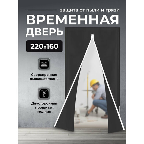 Временная дверь/ Одноразовая дверь, защита от пыли, дверь для ремонта 160*220 см (Черный/Белый)