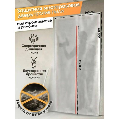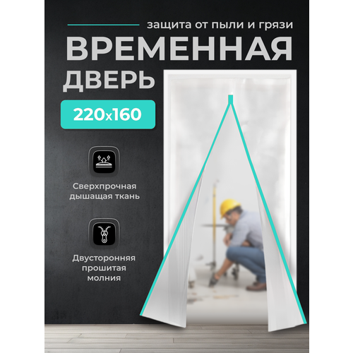 Временная дверь , Одноразовая дверь , Застежка молния 160*220 см (Белый)