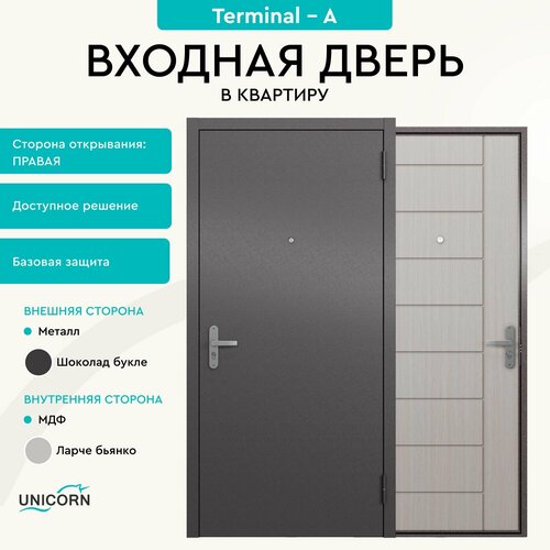Дверь входная металлическая в квартиру Unicorn Terminal A 860х2050 правая, антивандальное покрытие, уплотнитель, цилиндровый замок 2-го класса