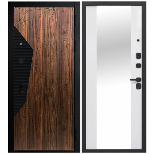 Входная дверь Ferroni 9 см Геометрия Эмалит Белый Зеркало (860мм) правая