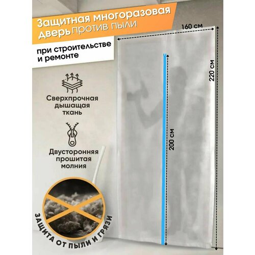 Временная дверь , Одноразовая дверь , Застежка молния 160*220 см (Белый/Голубой)