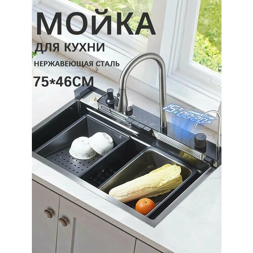 Мойка кухонная ououfaucet, нержавеющая сталь, серая, прямоугольная, 75 x 46 см
