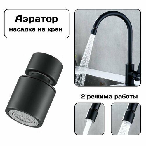 Насадка на кран с поворотным аэратором , 2 режима работы, экономия воды, черная