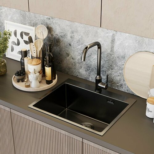 Врезная кухонная мойка 45 см, Gerhans K36045В, матовое графит черный, графит