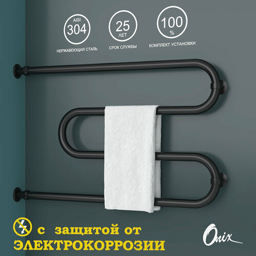 Полотенцесушитель Водяной Onix, модель Hit Direct Black Left 500x800, М-образный, Черный матовый, полный комплект, с защитой от электрокоррозии