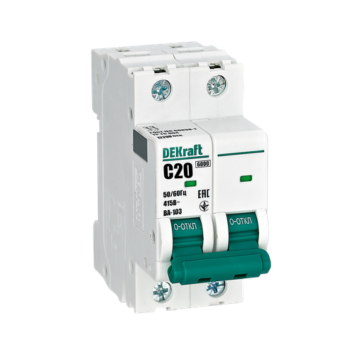Автоматический выключатель Dekraft ВА-103 2P C20 A 6 кА