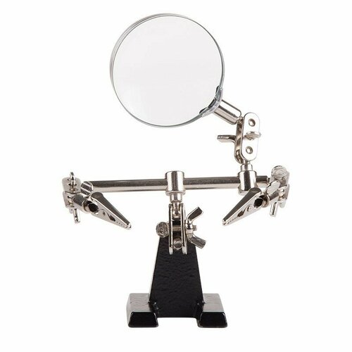 Держатель Третья рука, 2 зажима, лупа 60мм (3х), основание чугун REXANT, цена за 1 шт