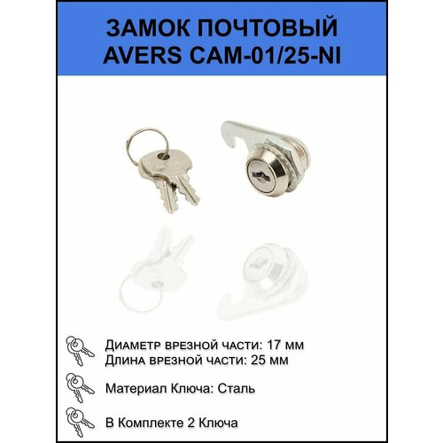 Почтовый врезной замок Avers для ящика 25мм 2 ключа