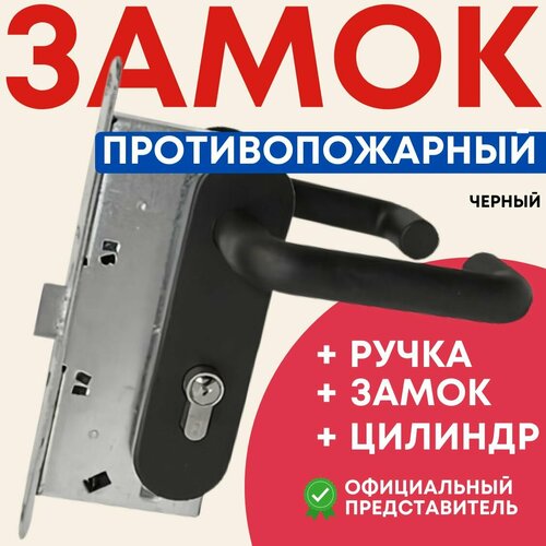 Замок врезной противопожарный с ручкой и цилиндром для металлической двери Avers 2000-ZN, МЦ ZM-80-C-CR