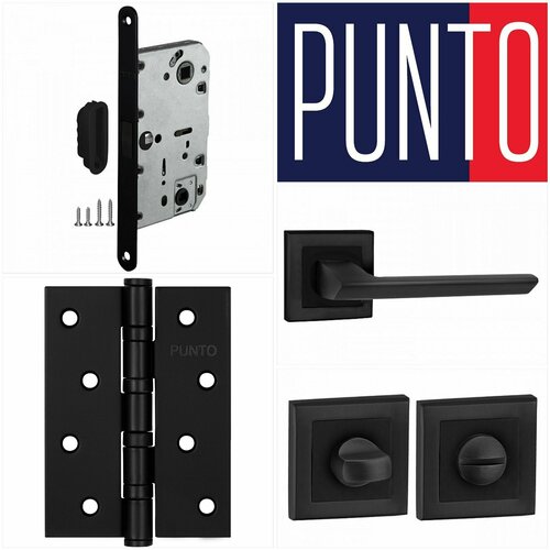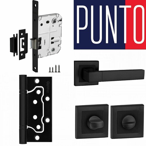 Комплект дверных межкомнатных ручек PUNTO с защелкой и универсальными врезными петлями, черный