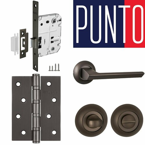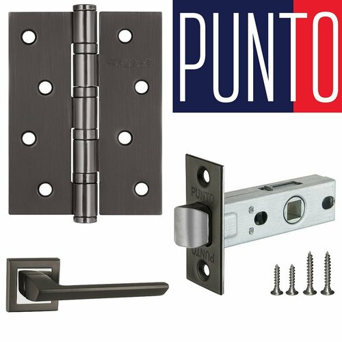 Комплект дверных межкомнатных ручек PUNTO с защелкой и врезными универсальными петлями, графит/хром