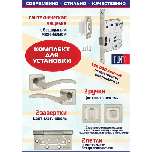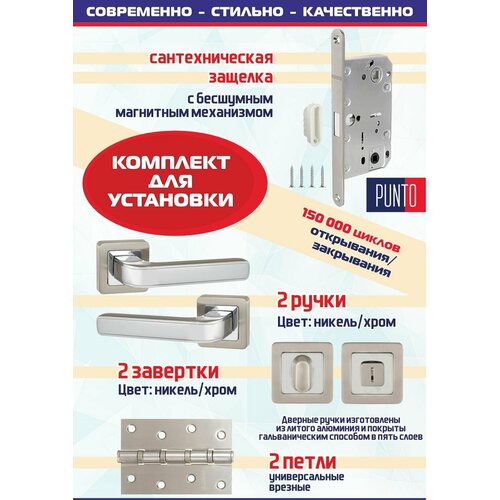 Дверная ручка NOVA QR SN/CP-3 матовый никель/хром Punto с защелкой сантехнической L72-50, ручкой поворотной BK6 и 2 универсальные врезные петли 4B