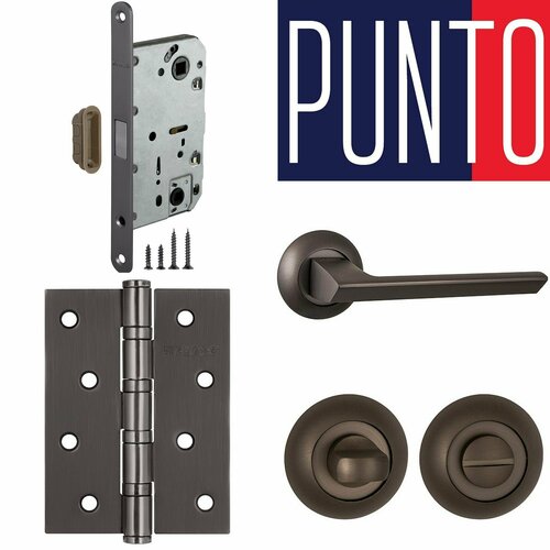 Комплект дверных межкомнатных ручек PUNTO с защелкой и врезными универсальными петлями FUARO, сатинированный хром