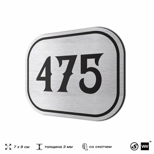 Номерок на дверь квартиры 475, для кабинета, офиса, шильдик 9 х 7 см, брашированная сталь, Айдентика Технолоджи
