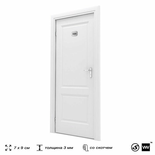 Номерок на дверь квартиры 326, для кабинета, офиса, шильдик 9 х 7 см, брашированная сталь, Айдентика Технолоджи