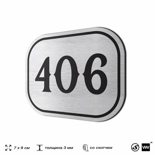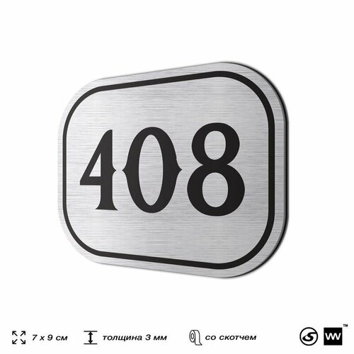Номерок на дверь квартиры 408, для кабинета, офиса, шильдик 9 х 7 см, брашированная сталь, Айдентика Технолоджи