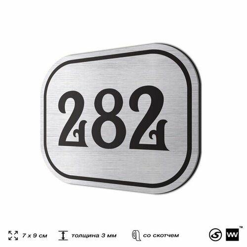 Номерок на дверь квартиры 281, для кабинета, офиса, шильдик 9 х 7 см, серебристый, Айдентика Технолоджи