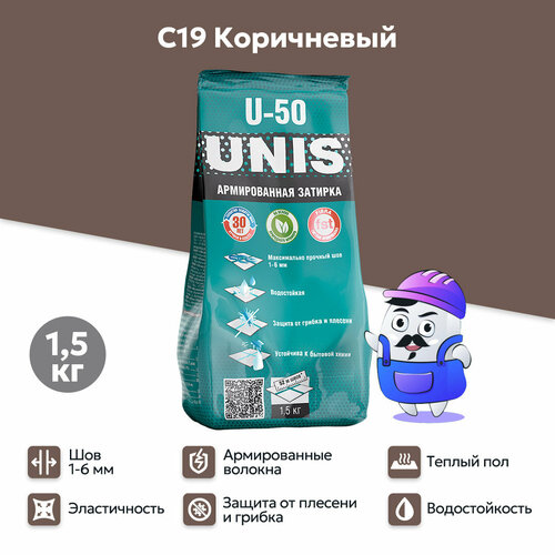 Затирка цементная армированная UNIS (ЮНИС) U-50 Коричневый С19 1,5кг