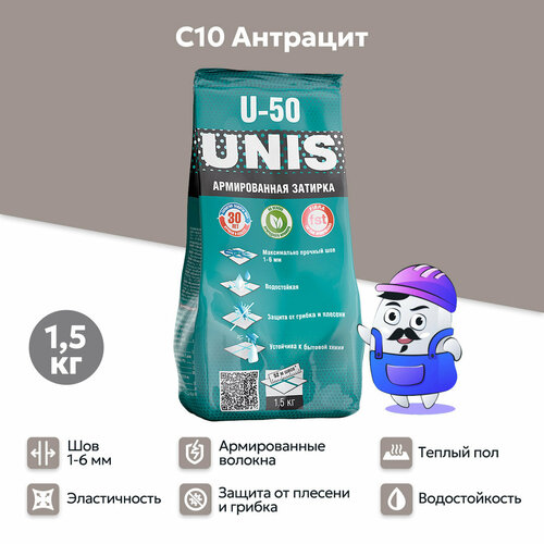 Затирка цементная армированная UNIS (ЮНИС) U-50 Антрацит С10 1,5кг