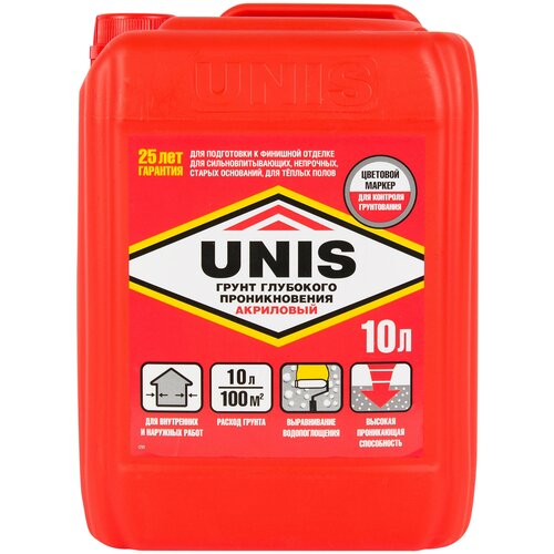 Unis Грунт Полимерный Акриловый Глубокого Проникновения, 10 кг, 10 л, белый