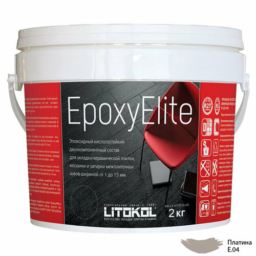Затирка эпоксидная LITOCHROM EpoxyElite E.04 Платина, ведро 2 кг
