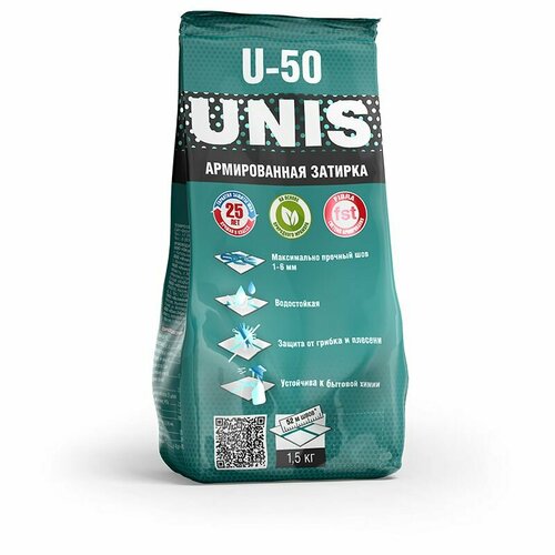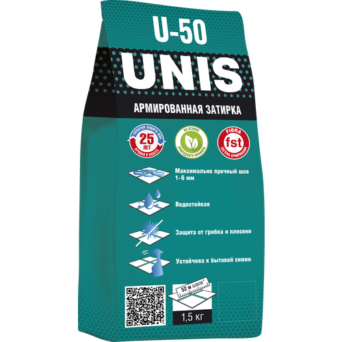 Затирка цементная армированная UNIS (ЮНИС) U-50 Белая С01 1,5кг