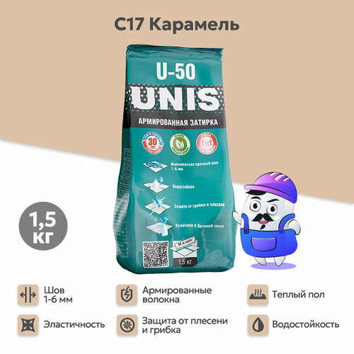 Цены на Затирка для плитки эластичная UNIS U-70 2 кг туман С08/ Цементная армированная, с защитой от грибка и плесени серый, бежевый в г. Санкт-Петербург