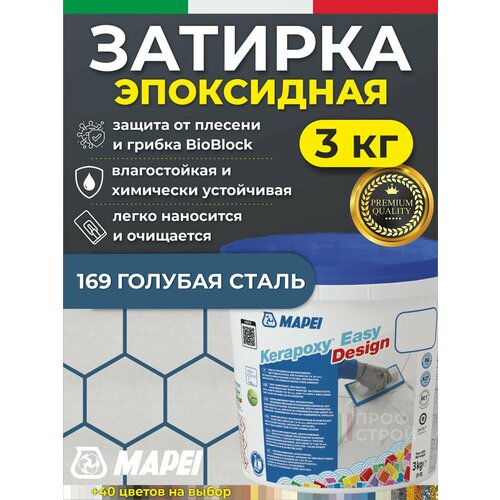 MAPEI Эпоксидная затирка для плитки Kerapoxy Easy Design 169 Голубая сталь, 3 кг - Двухкомпонентная стойкая клей-фуга для плиточных швов от 1 мм/ кислотостойкая/ противогрибковая/ водонепроницаемая