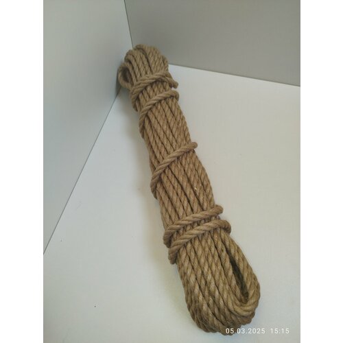 Джутовый канат, бежево-золотистый, диаметр 8 мм, разрывная нагрузка до 270кг, 10 м