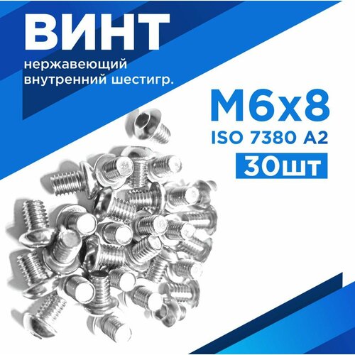 Винт М6х8/8 мм, нержавеющая сталь А2, внутр/шестигр, комплект 30шт