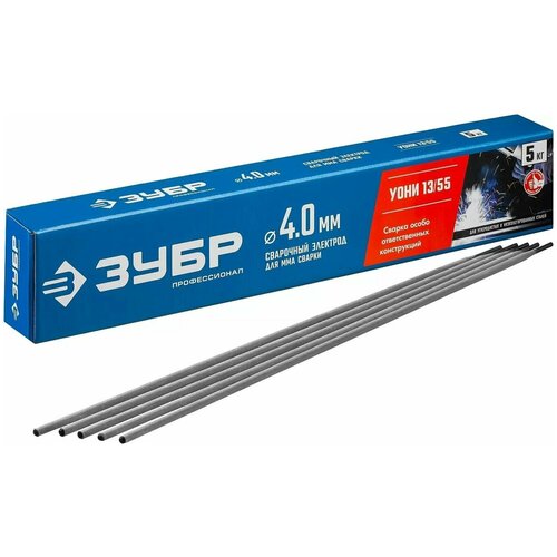 ЗУБР электрод сварочный УОНИ 13/55 с основным покрытием, для ММА сварки, d 4.0 х 450 мм, 5 кг в коробке, Профессионал.