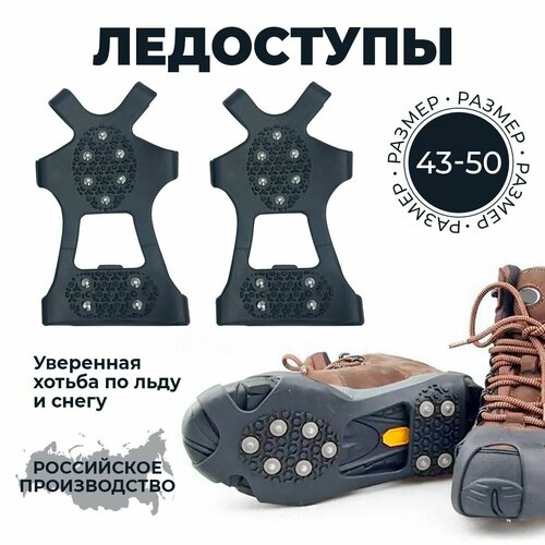 Ледоступы на обувь размер 47 - 54 (1 пара) ледоходы для обуви универсальные 10 металлических шипов, антигололед для прогулок и спорта, для рыбалки