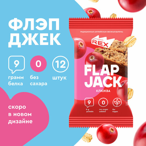 Печенье овсяное протеиновое ProteinRex без сахара Flapjack Клюква, 12шт шт х 60 г, низкокалорийный десерт, ПП сладости, спортивное печенье