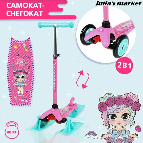 Самокат-снегокат детский 2 в 1, трёхколёсный