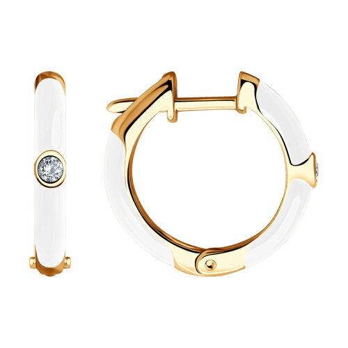 Серьги конго Diamant online, серебро, 925 проба, золочение, эмаль, фианит, длина 1.8 см,