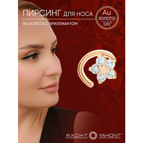 Пирсинг в нос Яхонт, красное золото, 585 проба, бриллиант, средний вес 0.13 гр. Яхонт Ювелирный