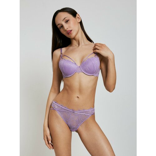 Женский бюстгальтер изготовлен из эластичной сетки и кружева, что обеспечивает идеальную посадку на разные типы фигур, добавляя удо...
